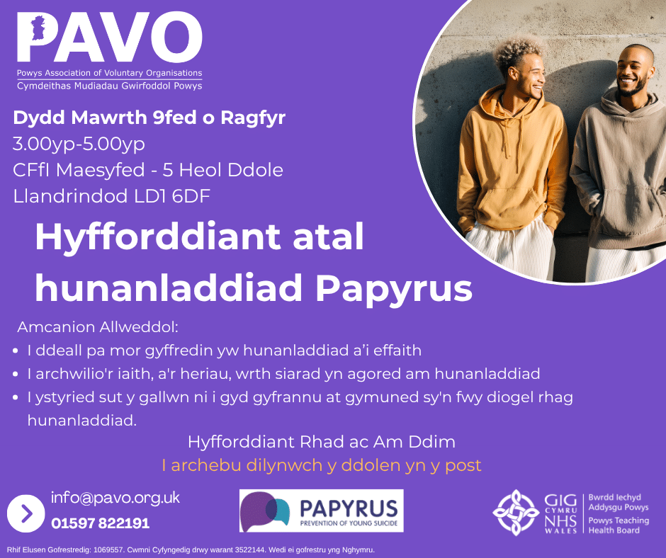 Tiwtorial trosolwg Atal Hunanladdiad a gyflwynir gan Papyrus yw’r hyfforddiant hwn a’r amcanion allweddol yw:
