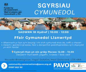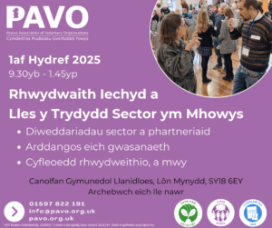 Rydym wrth ein bodd eich gwahodd i gyfarfod nesaf Rhwydwaith Iechyd a Llesiant PAVO. Mae’r rhwydwaith yn dod â sefydliadau’r trydydd sector, grwpiau cymunedol, a phartneriaid allweddol ynghyd i gydweithio ar wella canlyniadau iechyd a llesiant ym Mhowys. Dyddiad: Dydd Mercher 1af Hydref 2025 Amser: 9:30yb – 1:45yp Lleoliad: Canolfan Gymunedol Llanidloes, Mount Lane, Llanidloes,...