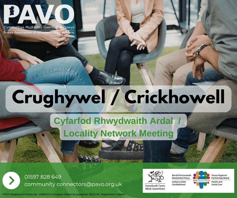 Our next Llandrindod, Rhayader Builth & Llanwrtyd Locality Network meeting is on 23rd April 2026, 10.30 – 12.00 hybrid at the PAVO office, U30, Ddole Road, Llandrindod, LD1 6DF or online Our Community Connector facilitated Locality Networks bring together individuals, community groups, and organisations. The sessions are an opportunity to discuss local health and wellbeing...