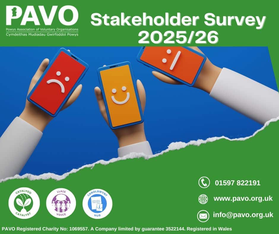 At PAVO we aim to continually improve the ways in which we provide services to the third sector in Powys. We would be very grateful if you would once again take the time to complete our stakeholder survey, which will help us to better our understanding of and response to the needs of the third sector and to develop our Business and Strategic Plans for next year.