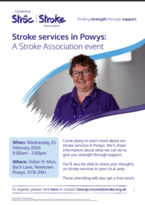 Come along to learn more about our  stroke services in Powys. We’ll share information about what we can do to give you strength through support.